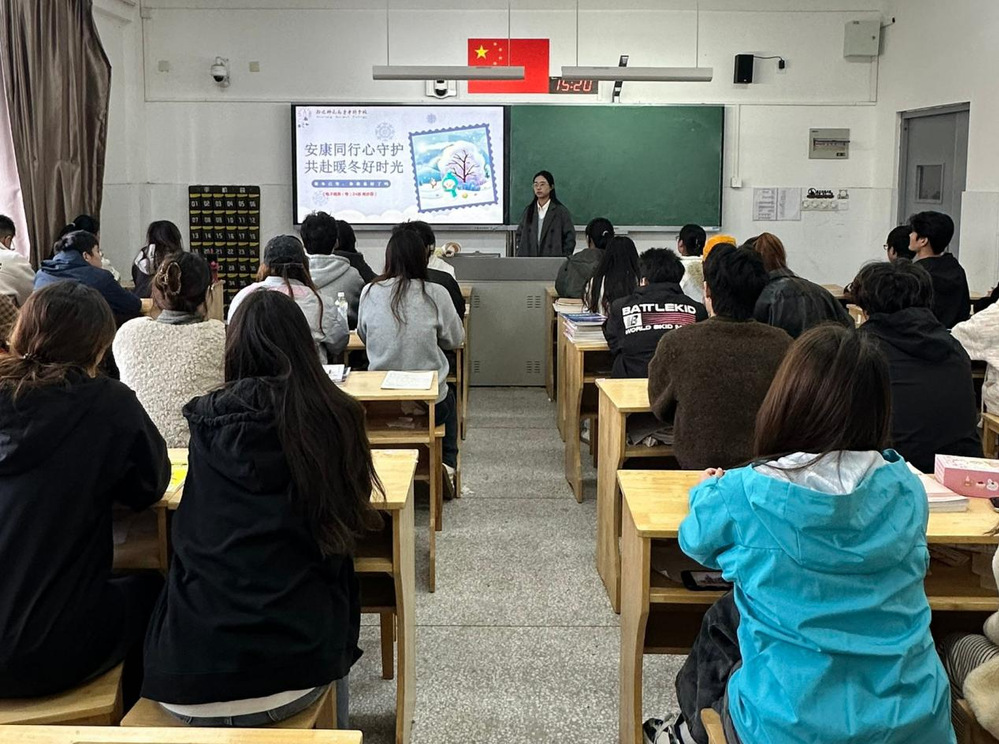 为进一步提升学生冬季自我防护意识,加强学生身心健康教育,11月24日下午,学工处组织全校各班召开“安康同行心守护,共赴暖冬好时光”主题班会。 班会过程中,各班辅导员围绕“识己”“强心”“聚力”三个方面,科普冬季常见疾病症状与预防措施,强调勤洗手、戴口罩、常通风等健康习惯,强化学生日常防护意识。引导学生科学认知冬季身心特点,学会通过情绪调节、规律作息、清淡饮食、适度运动、保持社交等方法增强心理韧性。随后,各班辅导员与学生一同练习了室内古法健身操,在欢快的节奏中舒展身体,驱散寒意,感受运动带来的活力
