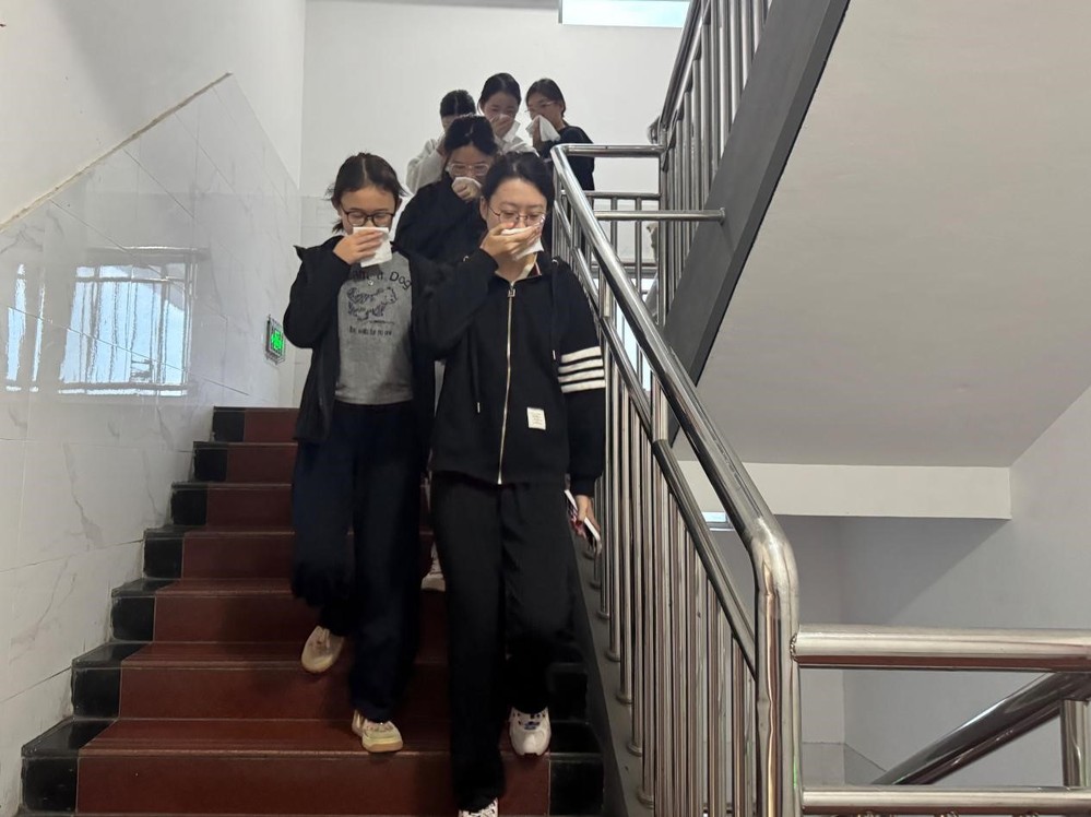 为切实提升全体师生应对突发安全事件的应急处置能力和自防自救水平,筑牢平安校园防线,2025年11月12日,学前教育第二学院联合校区管理办公室组织开展了消防应急疏散暨反恐防暴演练活动。校党委委员、副校长杭斌亲临现场临指导,全院师生积极响应、默契配合,以规范的流程、迅速的反应圆满完成演练任务。 11月12日上午6点40分,校园广播准时发出消防预警信号,演练正式拉开序幕。警报响起后,学生迅速捂住口鼻,弯腰低姿,保持间距,迅速撤离至安全区域。楼道内引导人员实时疏导,避免拥挤踩踏。从警报拉响到全员安全集结