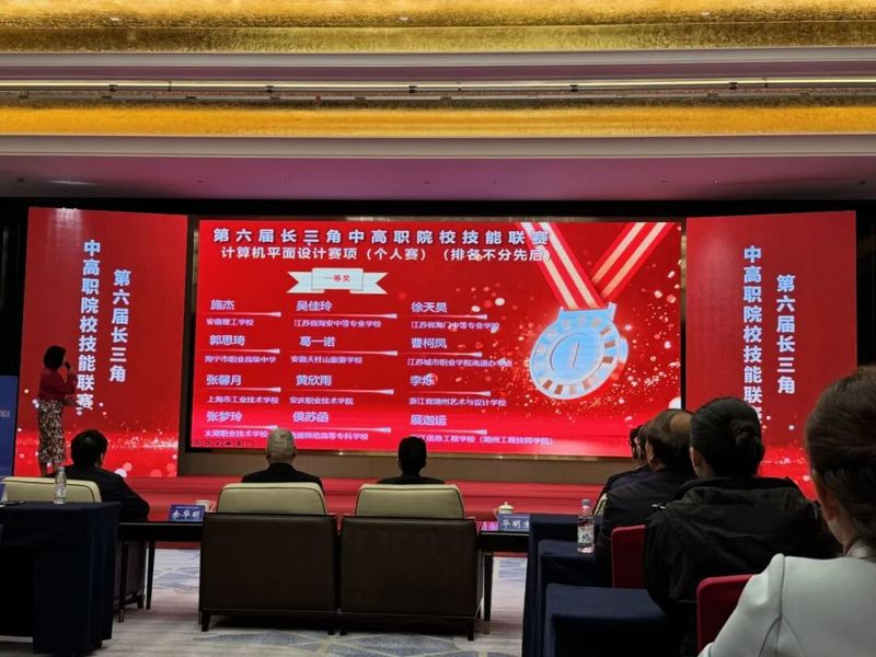 2025年10月26日,第六届长三角中高职院校职业技能联赛在安徽省安庆职业技术学院盛大举行。我校美术学院郁婉婷老师指导的侯苏涵、付紫萱两位同学,凭借出色的专业能力与稳定的现场发挥,在“计算机平面设计”赛项中脱颖而出,分获一等奖与三等奖,为学校赢得荣誉! 本次大赛由安庆市教育体育局、人力资源和社会保障局及安庆职业教育集团联合主办,竞争激烈。其中“计算机平面设计”赛项共吸引长三角地区21所院校的42名选手同场竞技。在长达4小时的封闭赛程中,选手需独立完成从创意到成品的全流程设计,全面考查其