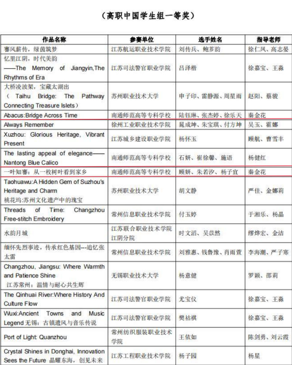 近日,第八届“外教社杯”全国高校学生跨文化能力大赛江苏省赛区比赛圆满完赛。本届江苏赛区比赛由跨文化能力大赛和短视频大赛两个赛项组成,我校初等教育学院同学组成的参赛团队在两个赛项中均有出色表现。 10月23日,短视频大赛暨第四届“外教社杯”江苏省大学生“用外语讲好家乡故事”、“用中文讲好中国故事”演讲比赛获奖名单公布,初等教育学院杨健红老师指导的石妍、崔徐馨、施语团队以及秦金花老师指导的陆钰琳、张杰婷、徐乐天团队和顾妍、朱若汐、杨子宜团队均获得一等奖。其中,顾妍、朱若汐、杨子宜团队的作品“一叶知謇